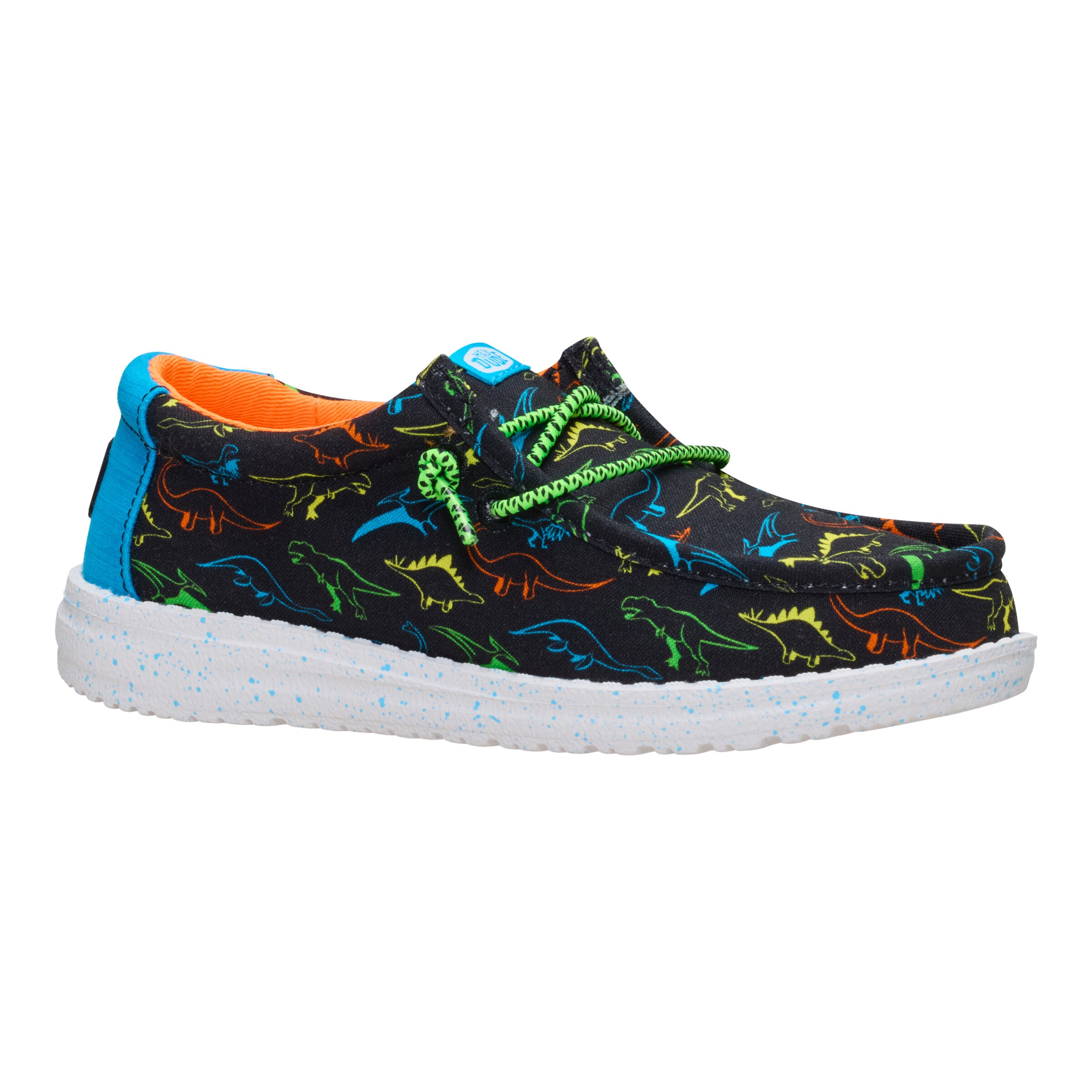 Kids who wear Wally Dinoworld shoes are so not the shy type. Blending in is not an option. thanks to all that neon. Like every pair of go-tos. these are comfy from day one. Fair warning: may lead to a new species of dudeosaurus.